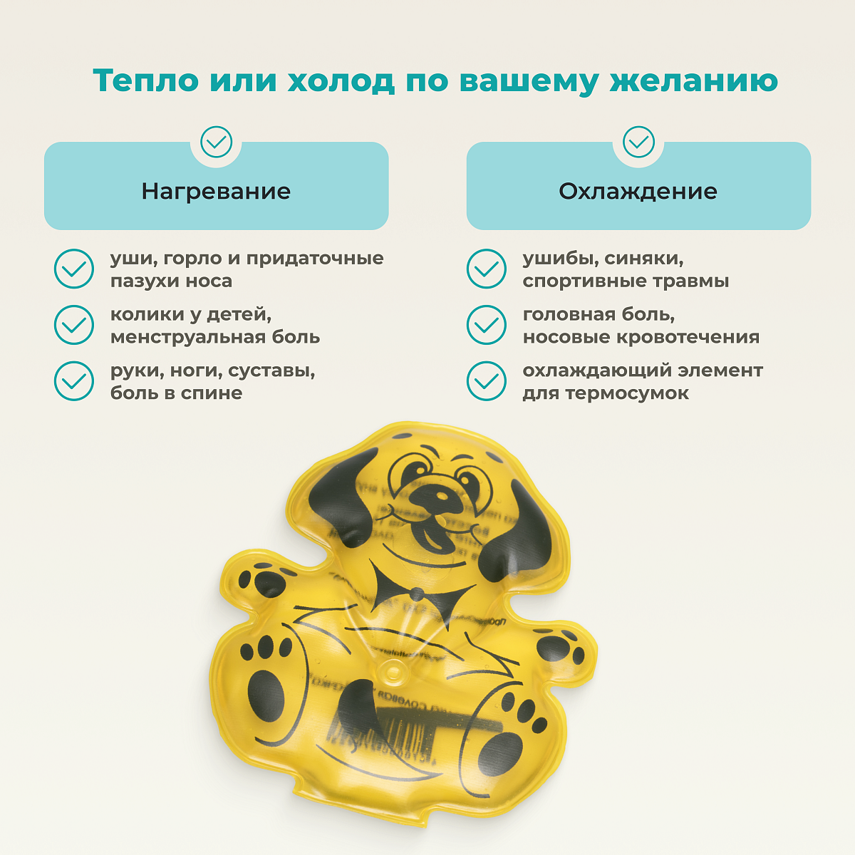 • двойной режим: мягкое прогревание (+52°C) и щадящий холодный компресс (+4-6°C);