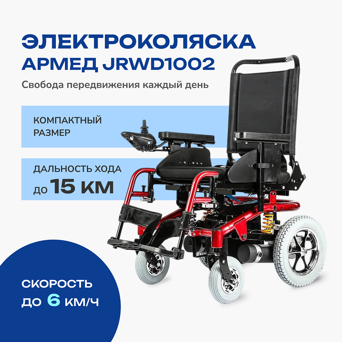 Электроколяска JRWD601 оснащена двумя аккумуляторами с общим временем работы до 2,5 часов. Одного полного заряда аккумуляторов хватит на 15 км пути с максимальной скоростью 6 км/ч.