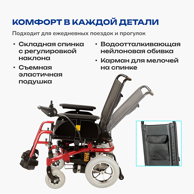 Электроколяска JRWD601 служит для комфортного передвижения людей с ограниченными двигательными возможностями. Эластичная подушка на сиденье снижает нагрузку на седалищные бугры пользователя. Коляска имеет съемные подлокотники и регулируемые по длине подножки. Два антиопрокидывателя не допускают переворачивание кресла-коляски и падение пользователя. Идеально подходит для повседневного использования – дома, в автобусе, магазине, на улице.