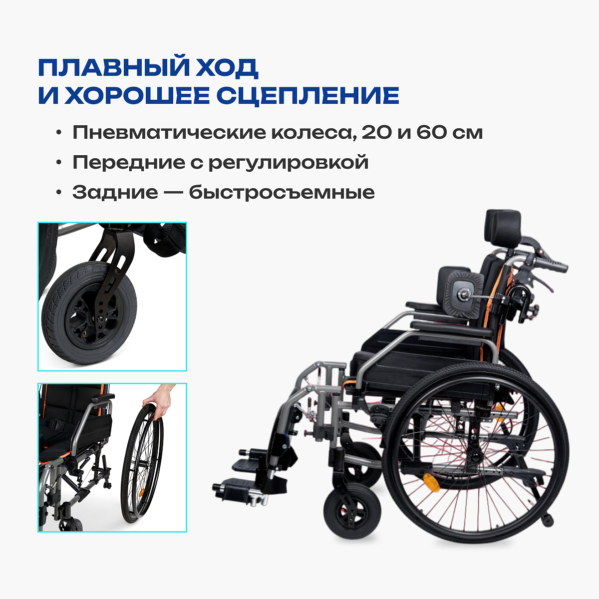 • быстросъемные задние колеса и антиопрокидывающее устройство с роликами;
