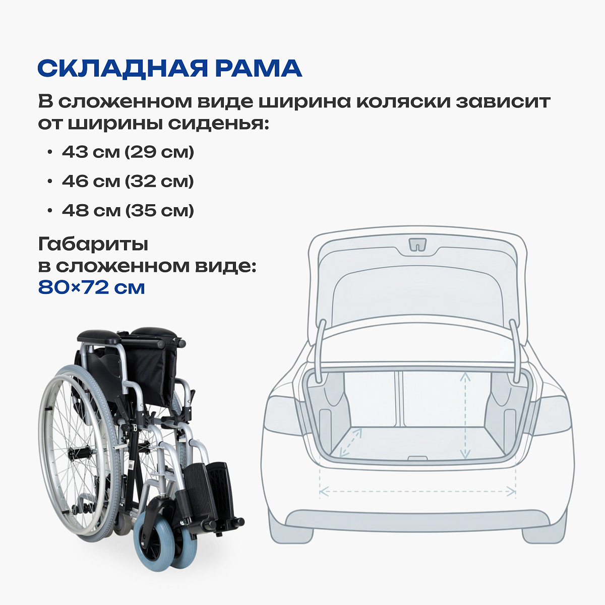 • облегченная складная алюминиевая рама помещается в багажник автомобиля;