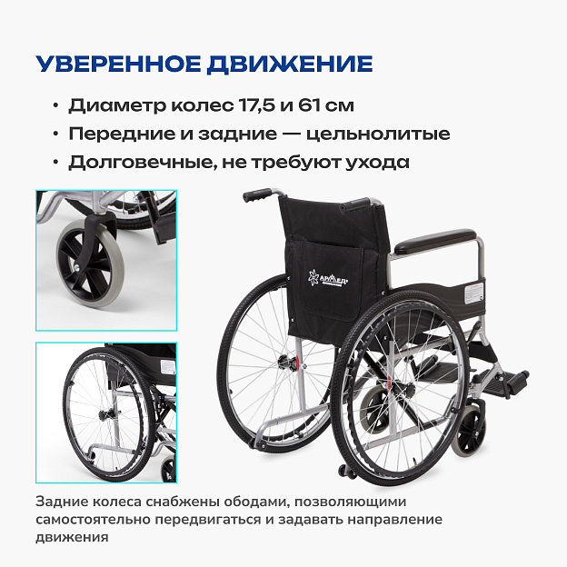 Цельнолитые колеса не требуют обслуживания и просты в уходе. Набор функций сосредоточен на главном: безопасности, удобстве сопровождения и базовом комфорте пользователя .