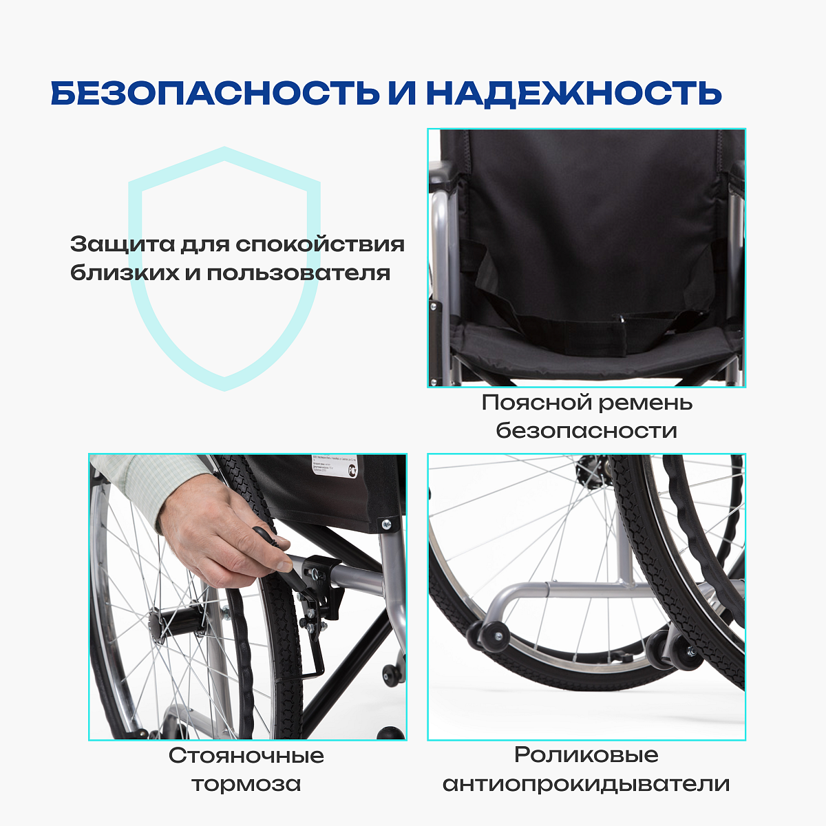 • уменьшает риск падений за счет ремня безопасности, тормозов и антиопрокидывающего устройства;