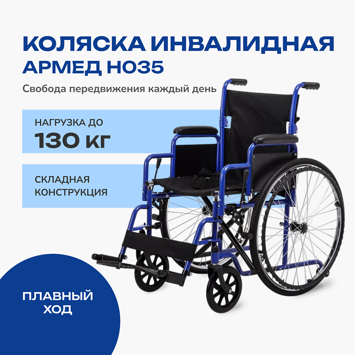 Кресло-коляска Armed H035 разработана как практичное решение для людей с ограниченной подвижностью, которым требуется надежное и при этом простое в эксплуатации средство передвижения. Складная рама из металлического сплава легко складывается без инструментов, что позволяет перевозить коляску в автомобиле и хранить ее, не занимая много места. Мягкое сиденье и спинка из прочного водоотталкивающего материала обеспечивают комфорт на протяжении всего дня, а пневматические задние колеса смягчают неровности дорожного покрытия при прогулках.