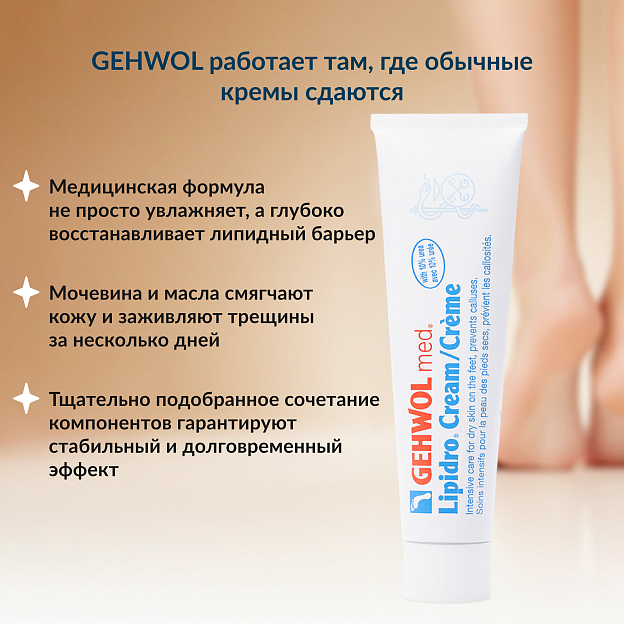 Для регулярного ухода за сухой и очень сухой кожей ног и ступней, в том числе при склонности к трещинам, натоптышам и повышенной чувствительности.