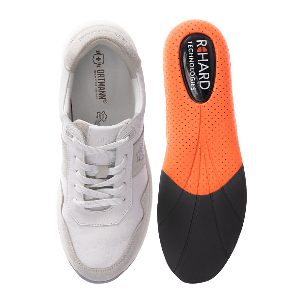 Внутри кроссовок расположена ортопедическая вкладная стелька-супинатор на полужесткой каркасной основе. Выразительный анатомический рельеф, приподнятые бортики и метатарзальный пелот повторяют естественные изгибы стопы, предотвращая усталость даже при длительном ношении.