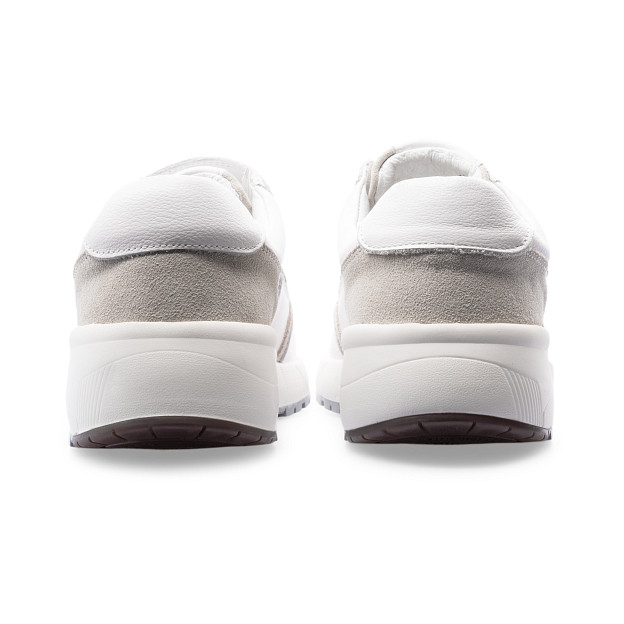 Внутри кроссовок есть вкладная ортопедическая стелька-супинатор на полужесткой каркасной основе. Выраженный анатомический рельеф, приподнятые бортики и метатарзальный пелот повторяют естественные изгибы стопы и предотвращают чувство тяжести и дискомфорта в ногах при долгом ношении.