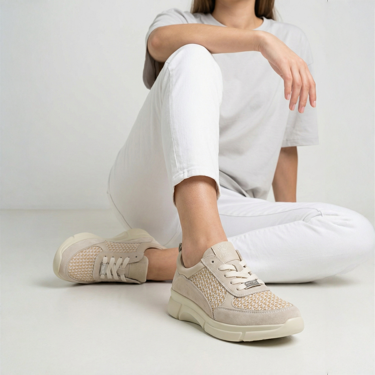 Женские ортопедические кроссовки Ortmann Comfort Anina — легкая дышащая модель, выполненная из сочетания натуральной кожи, замши и дышащего текстурного текстиля. Конструкция обуви мягко подстраивается под стопу и подходит для повседневной носки и долгих прогулок. Особое расположение швов и увеличенная внутриобувная конструкция учитывают потребности женщин с широкой стопой. Анатомическая пяточная часть с углублением и поддержкой сводов помогает стопе не заваливаться внутрь, сохраняя более устойчивое положение при ходьбе.