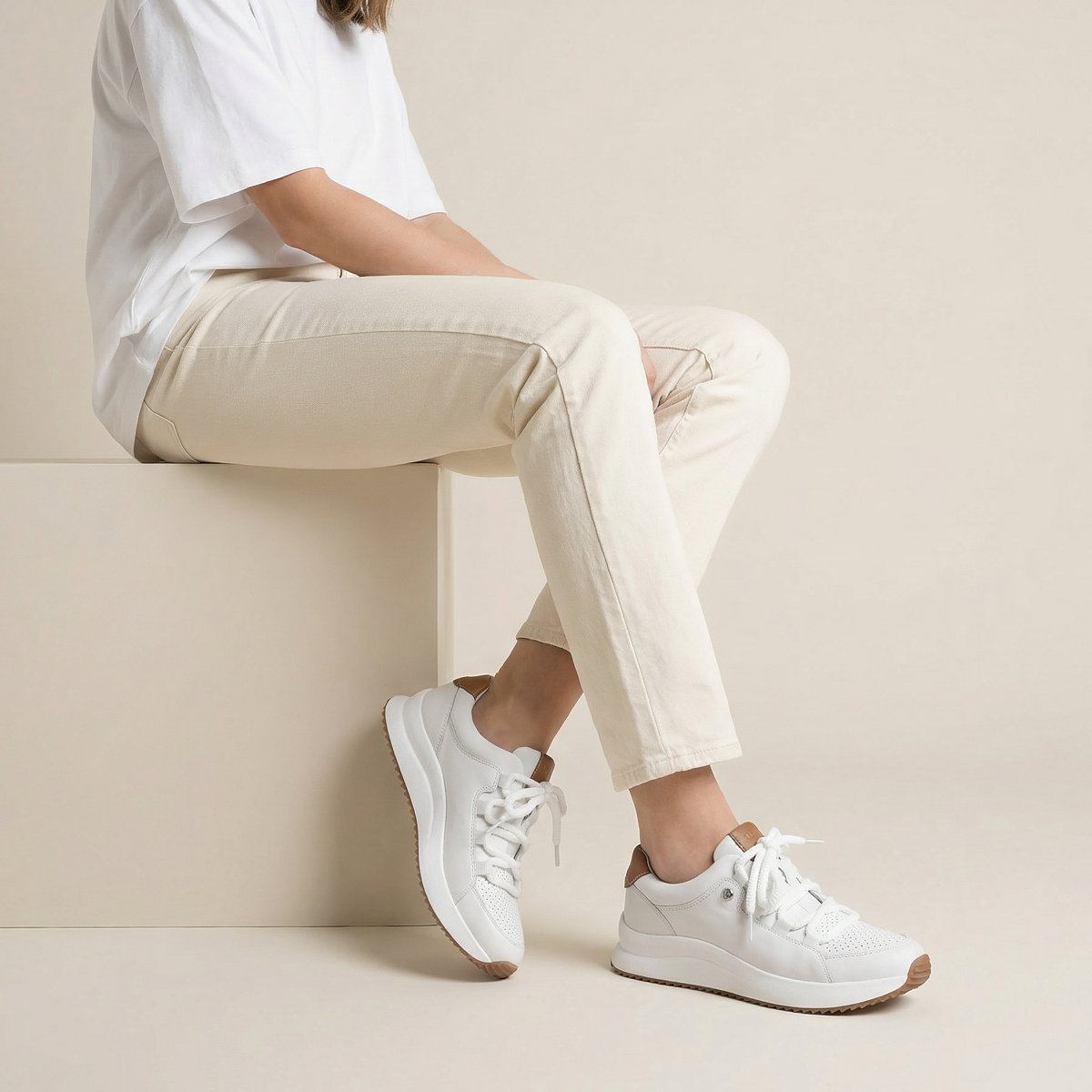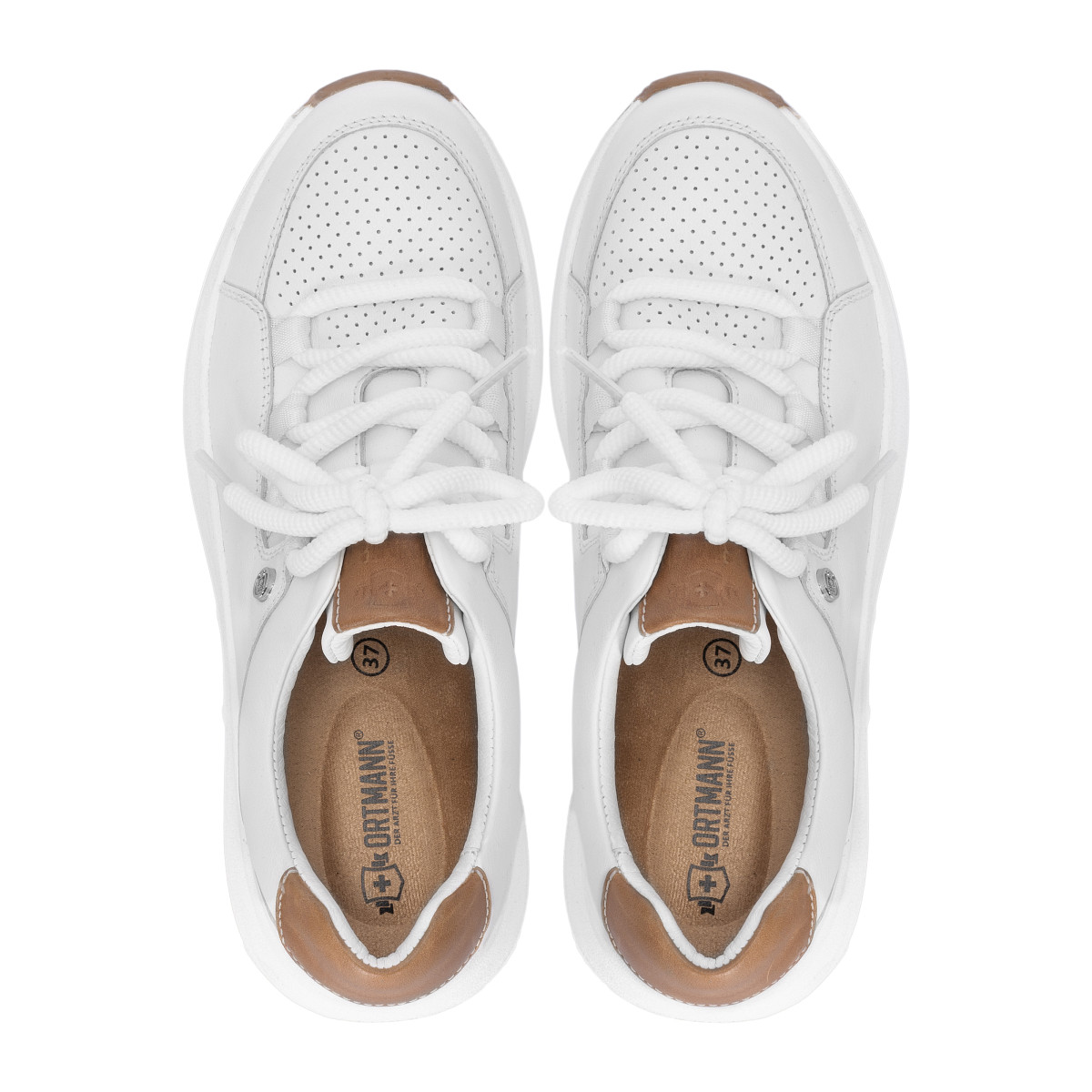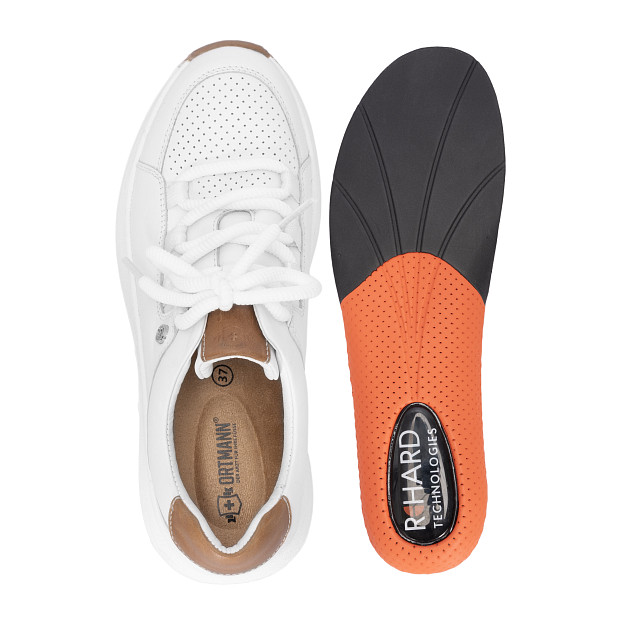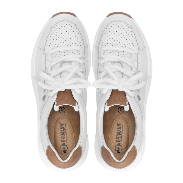 Женские ортопедические кроссовки Ortmann Comfort Oda — легкая летняя модель из натуральной кожи с перфорацией. Фиксация осуществляется с помощью удобной широкой шнуровки: обувь легко надевать и снимать, при этом можно быстро подстроить посадку под подъем и полноту стопы. Особое расположение швов, подкладка из дышащего текстиля и натуральной кожи и увеличенная внутриобувная конструкция учитывают потребности женщин с широкой или чувствительной стопой, уменьшая риск натираний и давления в проблемных зонах.