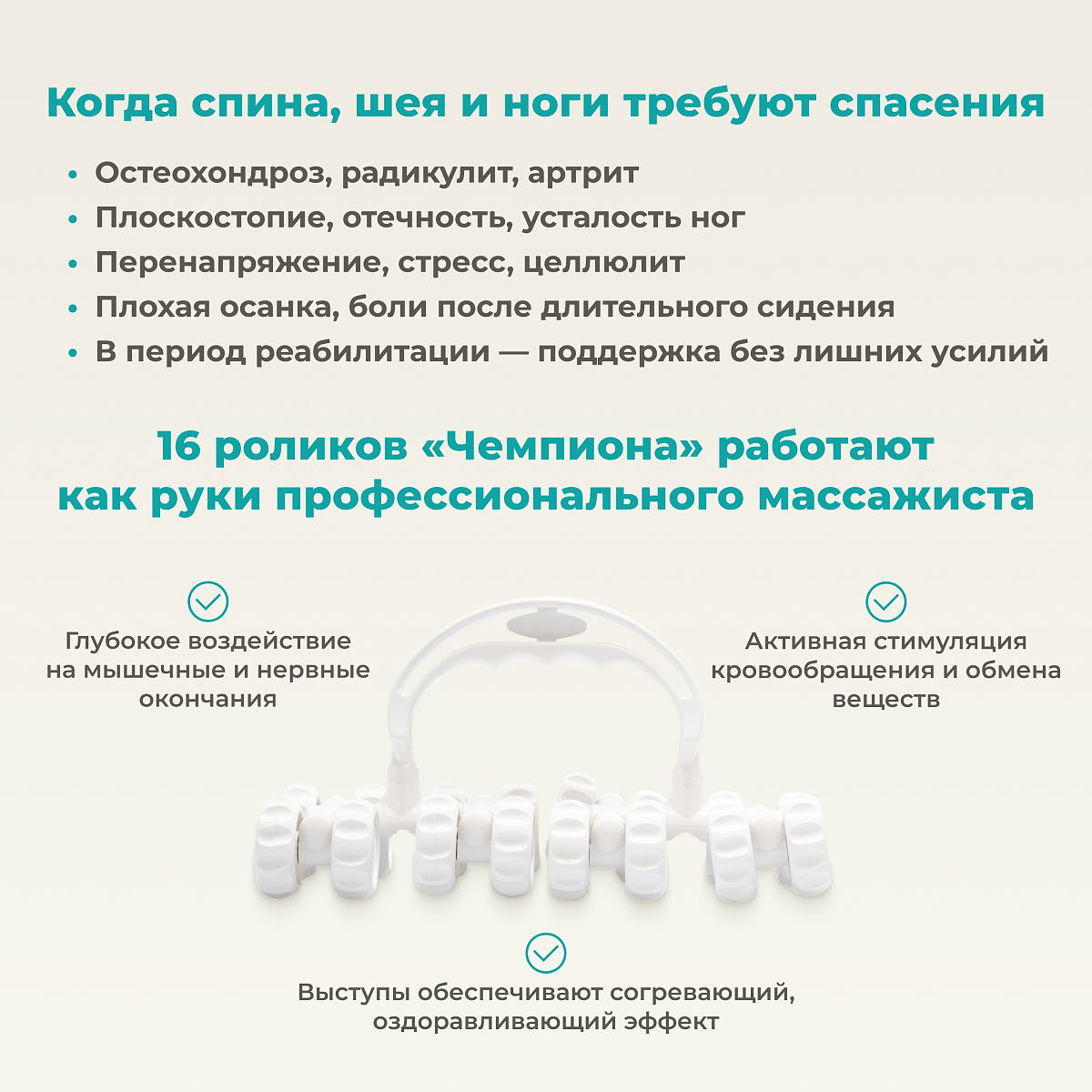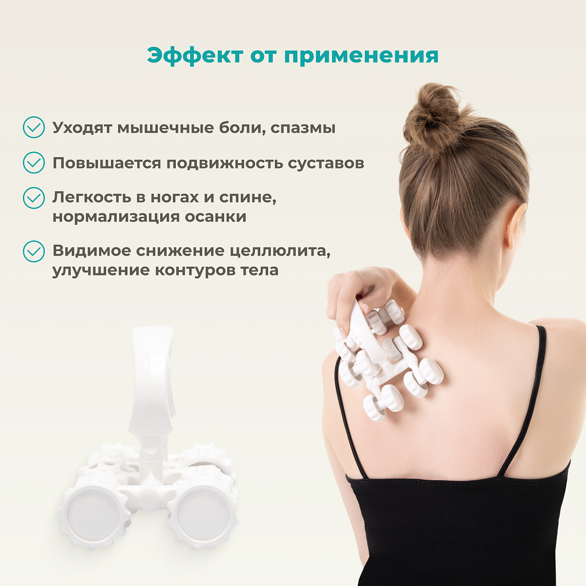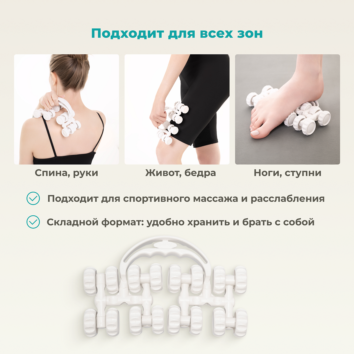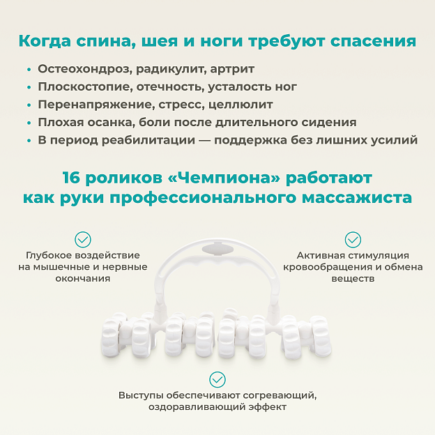 • подходит для массажа спины, ног, шеи, рук и живота;