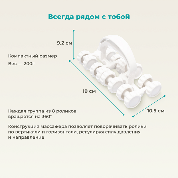 Массажер «Волшебные пальчики – Чемпион» от бренда Дельта-Терм разработан для глубокого прорабатывания мышц и снятия усталости. Благодаря уникальной конструкции с восемью парами роликов, которые можно вращать по горизонтали и вертикали, массажер адаптируется к любому участку тела и уровню давления. Он идеально подходит для самостоятельного использования дома, на работе или в дороге, помогая держать тело в тонусе.