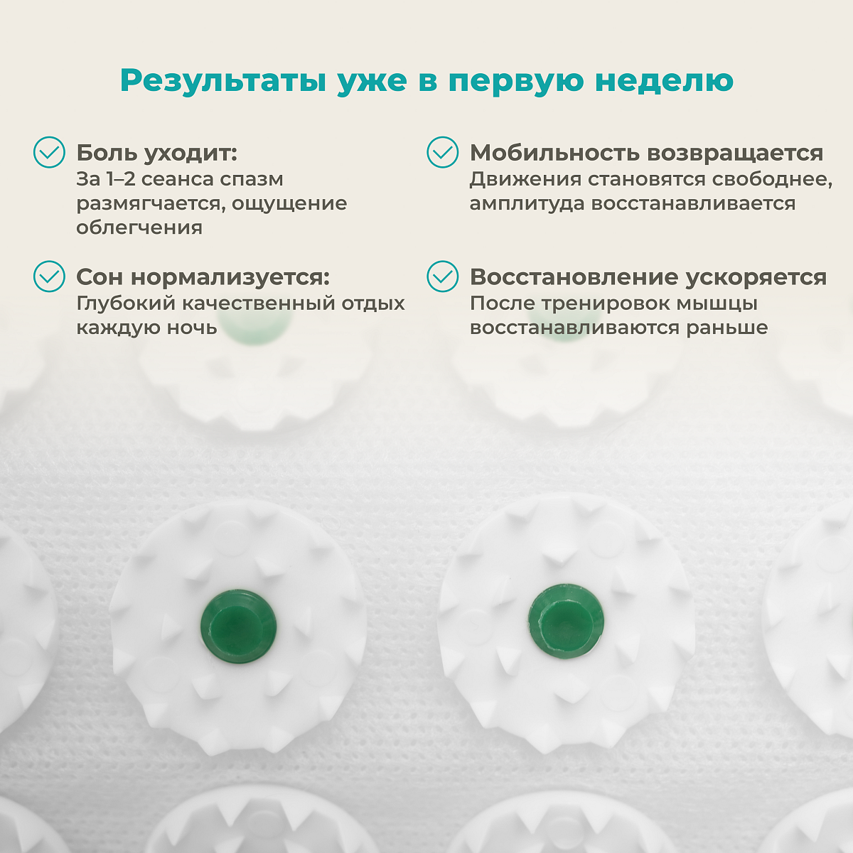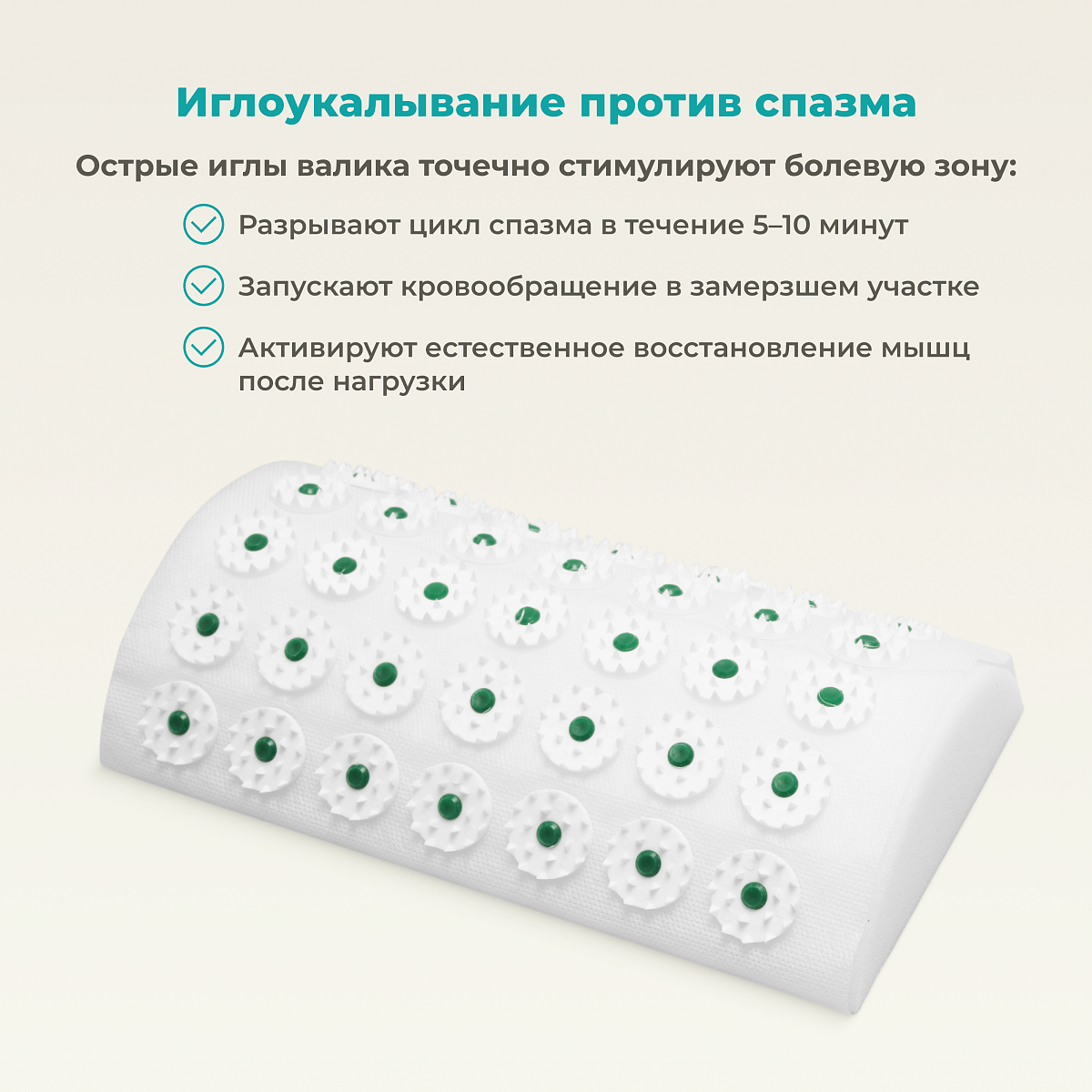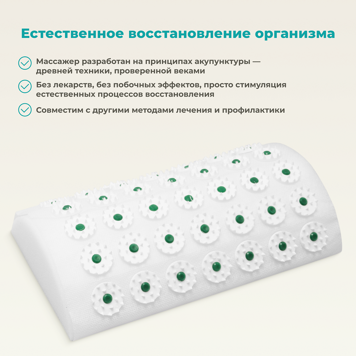 • интенсивность воздействия пластмассовых игл на тело можно увеличить путем поворота головы из стороны в сторону или более плотным прижатием тела к валику;