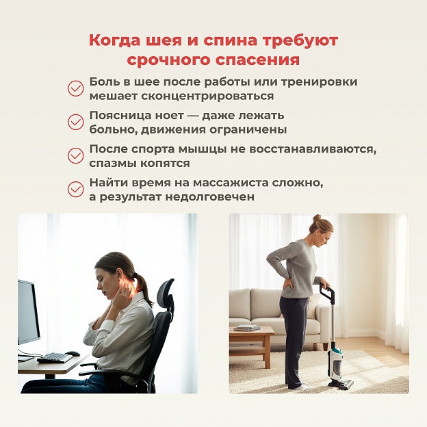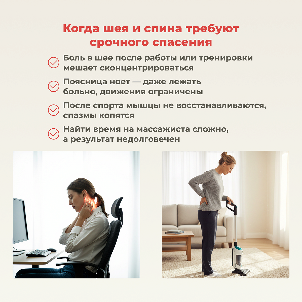 • Воздействует на различные части тела — шею, поясницу, грудной отдел;