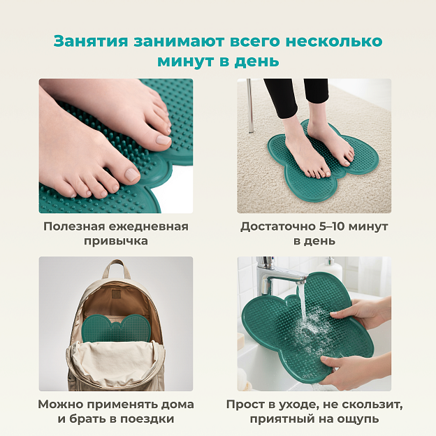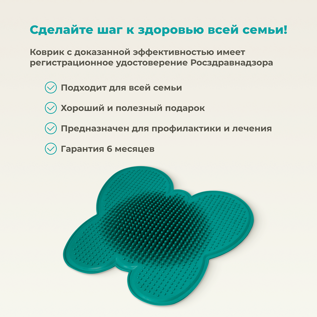 Особенно полезно использование массажного коврика детям и подросткам от 1 до 14 лет - способствует формированию физиологически правильных сводов стопы.