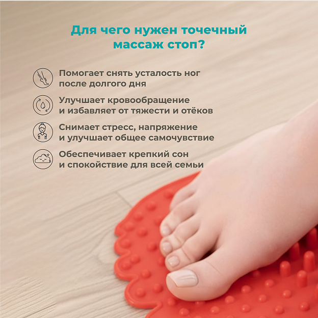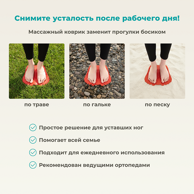 • используйте коврик ежедневно для профилактики утомляемости ног.