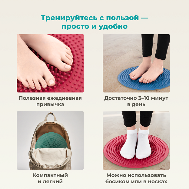 Позволяет проводить точечный массаж стоп, оказывающий нормализующее воздействие на функции внутренних органов. Эффективное средство против плоскостопия.