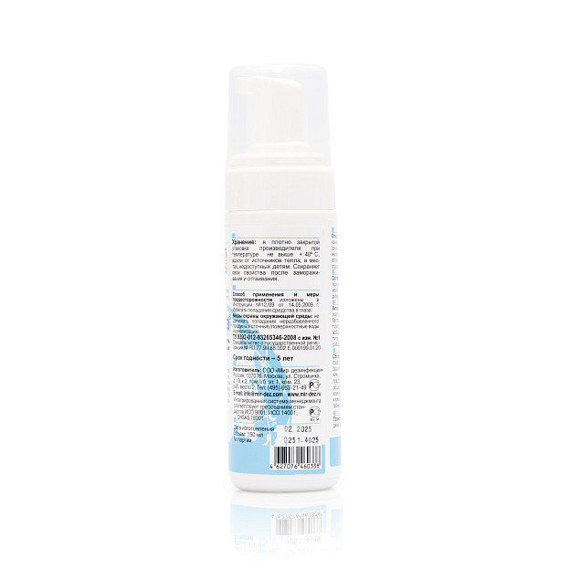 • Обработка рук хирургов: предварительно тщательно вымыть руки тёплой проточной водой с мылом в течение 2 минут, высушить стерильной марлевой салфеткой. Затем нанести дважды по 2,2 мл средства (по 3 дозы при нажатии пенообразующего дозатора) и втирать в кожу кистей рук и предплечий, поддерживая их во влажном состоянии. Общее время обработки составляет 4 минуты.
