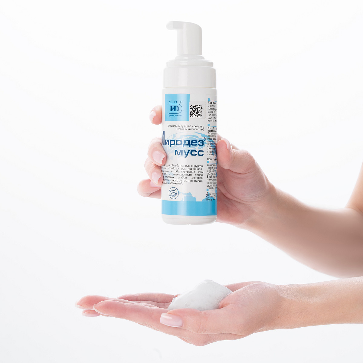 Бесспиртовой кожный антисептик «Миродез мусс» обеспечивает пролонгированное антимикробное действие не менее пяти часов и подавляет образование «перчаточного сока». Он применяется в виде пены и жидкости для обработки рук, кожи инъекционного поля и ступней. Средство содержит увлажняющие кожу компоненты и не вызывает раздражения.